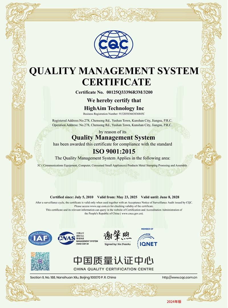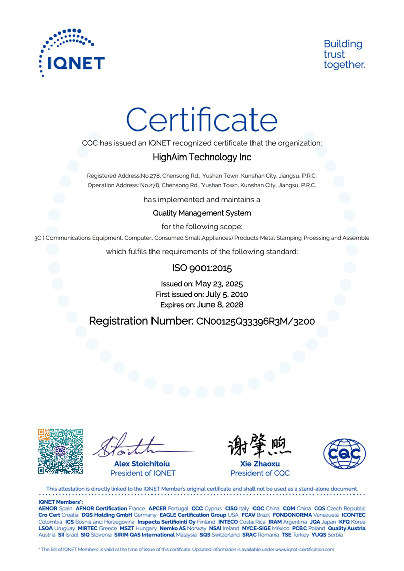 Established in 2007, HighAim Technology Co., Ltd. is headquartered in Kunshan, China, where it operates a 33,300-square-meter manufacturing facility. The company focuses on high-end cloud server chassis, customized cabinet solutions, and networking equipment enclosures, supported by integrated tooling and manufacturing capabilities. With structured management systems in place, HighAim consistently delivers reliable, high-quality design, manufacturing, and after-sales services. The company holds ISO 9001 and ISO 14001 certifications and continues to achieve annual revenue growth of over 30%.